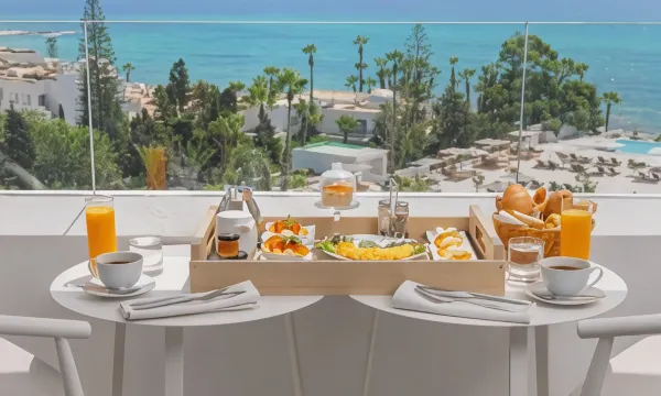 是一个特别棒的酒店。酒店位置特别好,环境优美。在阳台可以观日出日落。酒店有自己的私家海滩,很安静。酒店离老城很近,走路20分钟到麦迪娜。服务热情周到。最赞的是餐厅,酒店双人间免费提供两个人特别丰盛的早餐和晚餐。总之一切超预期,特别推荐