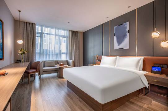 这家酒店的位置真的超赞,离火车站特别近,出行赶车都很方便。酒店大堂淡淡的桔子香氛闻着很舒服。房间干净整洁,智能设施用起来很方便,床品柔软,隔音效果也不错。前台服务热情周到,性价比很高,不管是出差还是旅行都很合适.