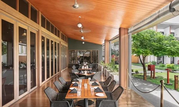 度假村设有 2 间餐厅 ,您不妨选择到Haydn's Steakhouse享用国际美食;也可以待在房间里,享受部分时段客房送餐服务。这里有 2 间酒吧/酒廊供您选择,可以喝一杯,放松一下。