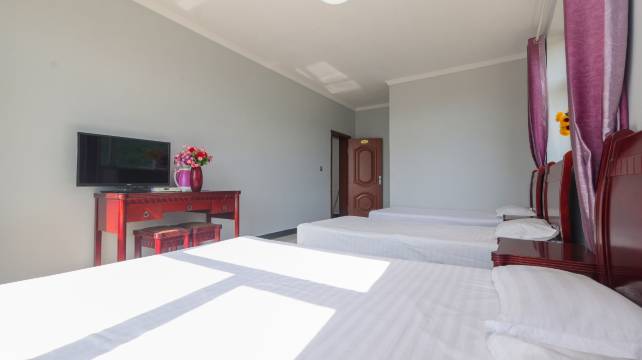 民宿的位置绝佳 周边环境宁静而美丽,清晨醒来就能闻到清新的青草味 ,看到牛羊成群,草原上的日出日落壮丽美丽,老板热情周到