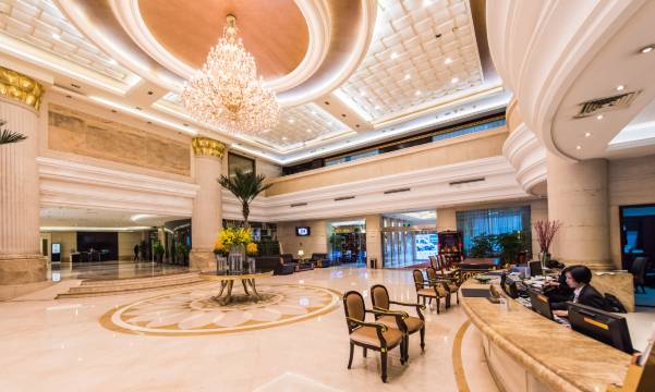 酒店主楼高十六层,裙楼四层,附楼三层,建筑及装修风格新颖别致、卓尔不群;经典的欧式风格与高雅的中式装饰相互辉映,配套设施设备齐全。设有独具一格的VIP套房、商务套房、商务房及不同风格的轻奢客房等,宽敞舒适,配备别具特色的豪华卫生间,其独立淋浴间更显品味不凡。酒店内配备多种规格的中餐宴会厅、豪华包厢和商场等,让您在休闲之余,感受更多便捷的住宿、商务、美食生活服务。