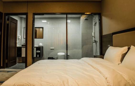 房间很商务,很简单,一次性用品很齐全,空调也给力,早餐也很不错,停车免费,就在楼下。整体来说还可以啦!挺好的!