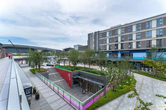 就在商场里面,吃喝很方便,附近很多好吃的门店,价格优惠,性价比高,房间干净明亮,空调舒服,面积很大,是loft上下结构,设施齐全,靠近火车东站和地铁口,出行方便,空调效果好,洗护用品好,满意,下次还来