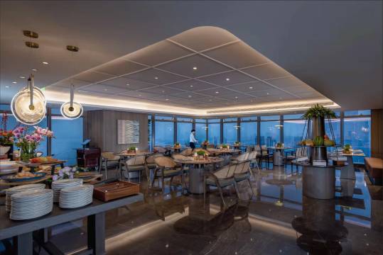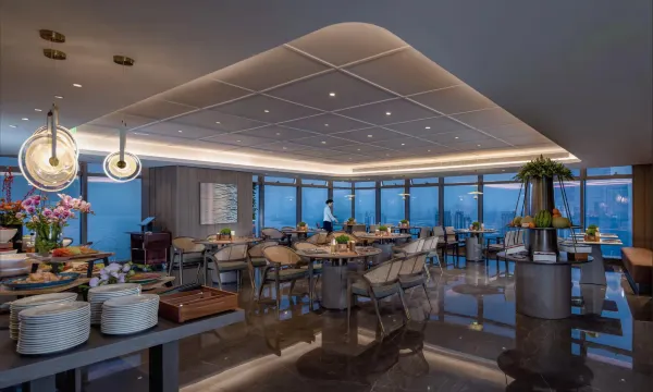 总体还不错,环境挺好的,设施都很新也比较智能,房间空间也够大,性价比比较高,超高楼层能看到远处红树林和深圳湾,早餐在44楼,菜品不算太多,但是也能吃得非常饱了。楼下是个不太大的商场。免费停车,和商场共用停车场,位置也挺多的。有一点不太好的就是隔音有点差走廊有声音都听的蛮清楚的,还有附近有装修,白天有点儿吵。房间床边底面感觉能看到明显的大颗粒灰尘。其他都还不错。