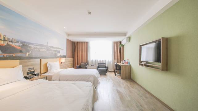 酒店地理位置很好,还有免费的停车场,来前台办理入住高效快捷,服务人员也很有礼貌,进入房间房型很大,干净卫生,有窗户通风效果好,床单被罩什么的也很干净,洗漱用品都很精致,一次性用的放心,Wifi效果很好,硬件设施也很完善,房间里还送着免费的矿泉水,性价比OK!