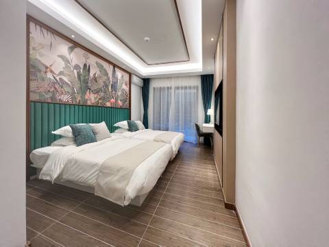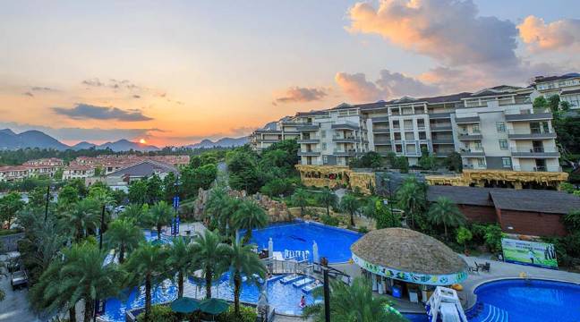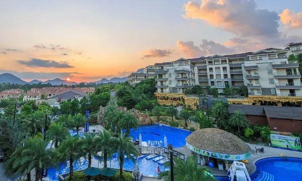 酒店位于白水寨景区附近金叶子温泉度假村内,依偎号称“北回归线的绿州”的南昆山脉,被誉为增城的“市”外桃源。周边群山之中,日出日落美景尽收眼底。白水寨省级风景名胜区附近,尽收南昆山国家森林公园秀丽美景,感悟卧佛山灵秀之气。酒店距珠三角主要城市均在1.5小时车程内,距白云国际机场仅50分钟车程,交通便捷,装修豪华,是你休闲度假的理想之选。酒店由国内知名设计师匠心创作而成,空间利用更加人性化,拥有多种风格主题客房,有:魔幻丛林,公主日记,秋收特色,蔚蓝天空和假日阳光。房间带落地窗帘、WIFI、空调、冰箱、电视机、吹风机、毛巾、独立泡池、独立卫生间、阳台、茶包、一次性用品、无论是公私差旅还是亲朋小聚,都能感受到同样温馨的体验。邻近网红打卡点有白水寨风景区,大封门水库,牛牯嶂,南昆山,石马龙湿地公园。当地还有水果蔬菜采摘,草莓园,百香果园,火龙果园,增城迟菜心等等无公害食物。让您在鸟语花香,山清水秀,自然舒适的环境里体验无忧舒适的旅程,相信会给您留下美好的回忆。酒店前台位置金叶子温泉度假村三期(田园)2号楼大堂。公寓型酒店客房分布在金叶子温泉度假村二期、三期。预定请直接联系酒店前台发客房准确位置。