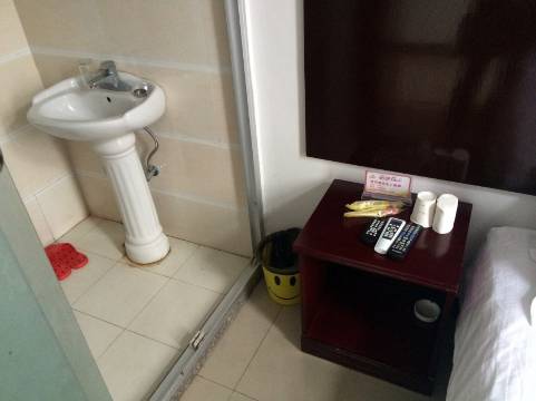 房间虽小,干净整洁,设施基本齐全,感觉良好。只有一张床和一个床头柜,小心点,还是够用。卫生间干净,热水非常好。就是烧水时,接水不方便。