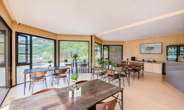 特地来评价一下我的入住体验。酒店环境和感受都更贴近大自然。我定的房间有一整面落地玻璃,早上躺在床上就能直接看到山体被阳光照亮,很治愈。远观群山巍峨,俯瞰平湖蜿蜒秀丽,让人心旷神怡。现在又是淡季,游客不多,很安静,很舒服。