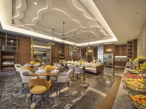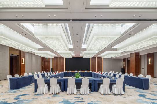 酒店项目总建筑面积三万余平方米,定位为高端商务度假型酒店,每间客房均配有外延式观景露台;酒店配有全日制餐厅、大堂吧、酒吧及7间独立的中餐包厢,为客人打造高端粤菜及地道的本地特色菜,酒吧与大堂吧则是您和知己好友品酒品茶小憩的好去处;500平方米的灵活宴会活动空间,是举办企业活动,私人派对及婚礼宴会的理想场所;健身中心配备先进的有氧运动和力量训练设施,为宾客带来全方位的健身体验。