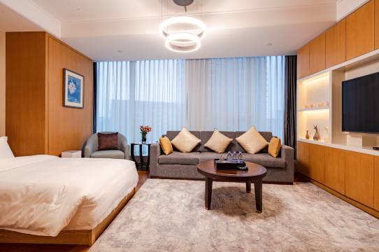 公寓与华尔道夫传奇酒店共享218米摩天大楼,私受其配套服务。客房坐拥优越的观景视角,典雅的装饰艺术风格让优雅和奢华在此停驻,超大宽敞的客房均配备独立会客区、厨房,更为您提供全屋中央空调,新风系统,品牌液晶电视,全自动滚筒洗衣机,智能电动马桶,空气净化器,Nespresso咖啡机,Sonos音响,MiniBar、功夫茶具、化妆放大镜、体重秤、香薰等,高速无线网络,房内可视门禁系统、保安24小时巡逻,全程提供管家服务,保证您的安全及私密性。I’m Glad to serve you,,公寓一直秉承很荣幸为您服务的理念,期待以热情、高效、优质、精细的服务为您打造非凡的入住体验。