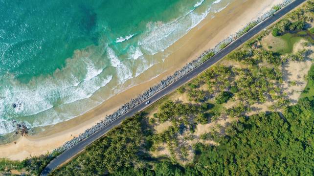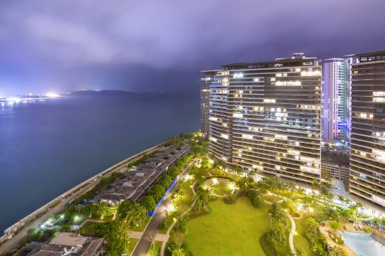 酒店位于海南万宁日月湾旅游度假区,日月湾是世界上拥有高质量定点浪型和沙滩浪型的海域之一;门店所处融创日月湾四面环海,观景效果俱佳,是真正的一线海景。