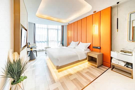 订的轻奢大满房了给免费升级了房型,房间设施那些都很新,房间很大性价比挺高的,还是大落地窗,房间没有异味,酒店服务态度也很好,很细心周到,酒店距离客运站很近,交通出行也方便,早餐种类丰富,有免费洗衣房还是带烘干的,出来旅游也不怕脏衣服没法洗了。闲来没事还能到大厅看看书,泡茶喝咖啡,很不错的