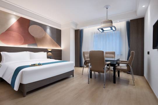 酒店环境不错,服务到位,很满意的一次居住,下次来还会继续光顾,订外卖也可以,导航直接可以到,房间很大也非常干净,下次去还会选择入住!