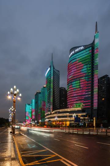 从引人注目的地标性双帆塔建筑外观设计,到融合了中国传统元素与优雅欧洲风格的时尚室内装潢、精心打造的完美细节,无不给人留下难忘而深刻的印象。豪华舒适的各式客房是您放松身心的理想港湾。所有的客房可饱览秀丽多姿的嘉陵江美景,让您尽情领略迷人风情。