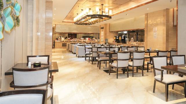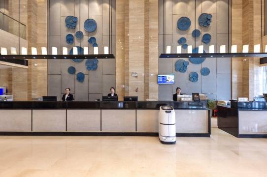 一进大堂就被酒店的大堂金碧辉煌的装修给吸引了,让很少写评价的我都忍不住想要夸赞两句…前台统一着装给人一种干练的感觉,一进到房间果不其然,装修的沉稳大气。床很软床单被罩干净到挑不出毛病。除了这些基础的,酒店的配套设施也很齐全,有健身房洗衣机,在跑步机上出汗的衣服,顺手就可以洗了烘干。早上的早餐也很丰富,吃饱了在大堂边上的书吧看看书,给自己充充电。最后想说的是酒店的充电停车位很方便,再也不用找地方充电了。睡一觉起来电就满了!赞赞赞!!!