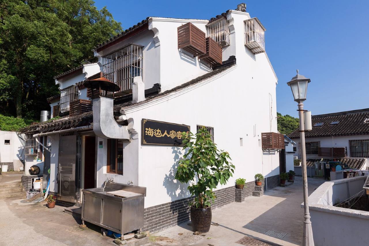 普陀山海边人家位于普陀山龙湾村,地处开山老庙紫竹林景区,毗邻南海观音大佛、海边,门前金沙如梭,碧水环抱。