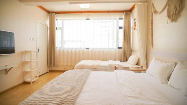 我们的客栈位于大理古城平等路下段安静的小巷里,出门几分钟便是古城通往火车站的8路公交车终点站。周边有大超市,小卖部,清酒吧,各类特色美食,文艺店铺;步行至古城热闹的玉洱路,人民路,洋人街十余分钟就到。客栈的每一砖每一瓦都是我们亲自设计,简约清新。在[一层]的小院里,你可以坐在鱼池前,赏花看鱼;倚坐在吧台喝咖啡,品茶,看电影;一抬头便可看那大理变化的云彩。[二层]的阳光书吧,古城里在懒人沙发或者摇椅上安静的听音乐,看书,发呆,享受大理悠闲慢生活;最吸引的是我们独备的专业天文望远镜哦!夜晚赏星看月,与三五好友放松闲聊,相当惬意哒。如果你对洱海边的长白桌椅有些审美疲劳,[四层]的大露台上独有的苍山小白桌,让你把古城尽收眼底,伸手仿佛就能触摸到苍山的云海。“是不是对生活不太满意,很久没笑过又不知为何......不如一路向西去大理”,希望你能在我们小小的院落里,好好享受大理温暖的阳光和海风,让忧伤和烦恼随风飘散~