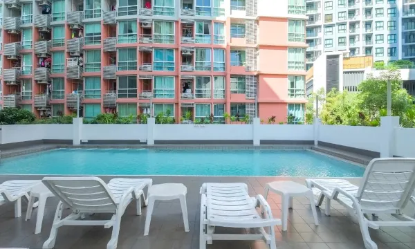 酒店是一家快捷酒店,MRT Sutthisan地铁站出来步行十五分钟,楼下就有24小时超市,周边吃饭要走到地铁站附近餐馆,超市很多,位置出行方便。酒店设施齐全,有免费泳池,房间大,有阳台,冰箱,免费瓶装水,一楼有付费餐厅,适合家庭出游,推荐入住。