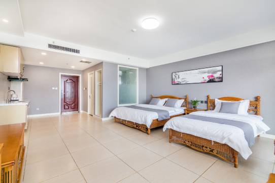 房间很大,宽敞明亮,很大的落地窗,视野开阔,从房间窗户可以看到大海,步行至海边3分钟,周边海鲜自助,大排档,KFC,必胜客,瑞幸,蜜雪冰城,另外还有京东便利店物美价廉,非常靠谱,值得推荐!
