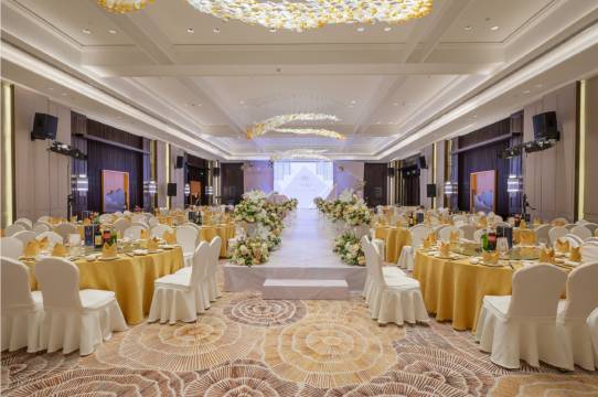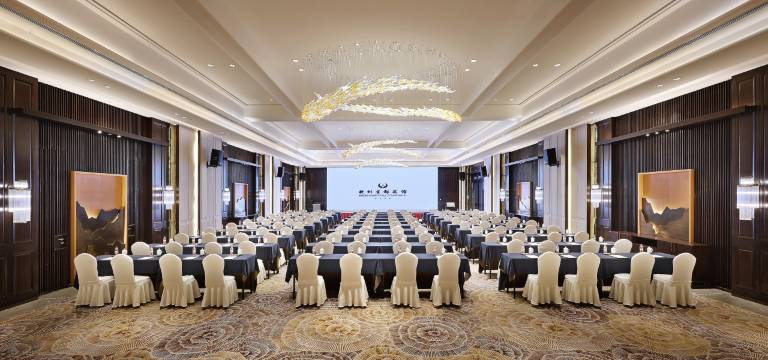 会议中心位于宾馆五楼,明亮高敞的空间以及运河意象的装饰点缀为举办商务会议的宾客带来愉悦的心情。会议中心共有10个大小不一的会议场地,无柱宴会厅“星都厅”面积为525平方米,层高7米,可同时容纳300至500人,并配有LED大屏,厅内灯光璀璨,明亮暖色内饰带来温馨感受,是商务会议、大型活动以及婚宴的理想场地。