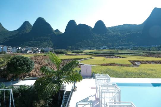非常满意的一次体验,人在画中游。房间设计非常合理,与景融为一体,孩子非常高兴,都舍不得走。峰林就在眼前,稻田就在窗边,泳池很漂亮,带孩子的话记得带泳裤,非常值得推荐,很好的体验