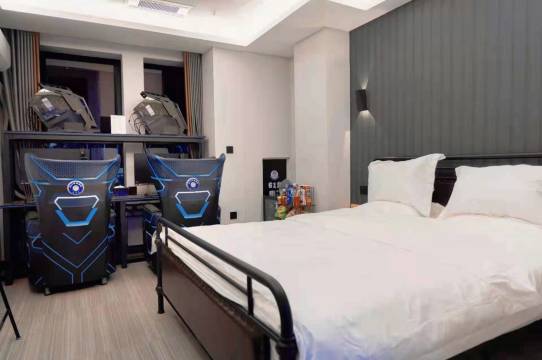 本酒店是一家以电竞主题元素和酒店住宿为一体的特色住宿模式酒店,走进我们电竞房就能感受到满满的电竞风,试想在这种舒适温馨的灯光效果环境下,和小伙伴一起玩玩游戏,困了有舒适的大床,简直美滋滋!当然不只是环境,这里拥有高标准的电脑配置,舒适的电竞椅,高端外设配备,玩游戏更酣战淋漓。为给您打造舒适满意的电竞入住环境,酒店有多种房间类型任你选择。本门店处于万象汇商圈,周边娱乐配套齐全,酒吧、美食、商场、小吃、一应俱全,交通也是非常便捷。路过一座城,记住一个人,本店恭候您的光临。