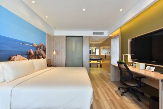 首先,位置极其便利。酒店位于城市核心商圈,毗邻火车站和主要公交枢纽,前往海边、体育场或机场火车站都非常快捷。周边商业设施齐全,楼下即有高品质餐厅,解决了快节奏工作中的餐饮需求。
