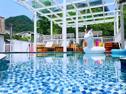 一家环境很不错的民宿,就在庾村广场附近。这边娱乐设施比较齐全,有一个小小的游泳池,如带小孩来的话可以玩玩水,还有一张台球桌,我们喝完茶就PK了几局,相当惬意,但现在山上蚊虫有点多,建议提前喷好杀虫剂或点上蚊香(房间也如此),总的来说还是不错的,推荐!
