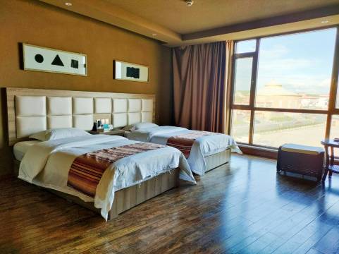 很有藏族特色的酒店,一个大大的帐篷造型很特别拍照很出片,前台小姐姐很热情,看我们带着孩子给我们升级了豪华标间,落地窗很大视野开阔。酒店隔壁的一颗餐厅也很有特色服务好做的好吃。离青海湖断崖30公里,地理位置完美