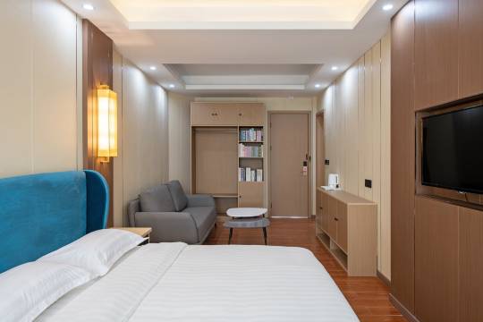 房间宽敞明亮,卫生挺好的,设施比较新,还有智能窗帘,智能灯光。交通比较方便,地铁公交都离得很近,楼下就有饭馆,吃饭也方便。