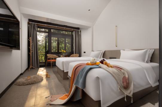 位置非常优越,南门进来五分钟就到,而且酒店门票就是广场,国庆、五一之类的大假期,这个广场都会有演出,在二楼阳台就可以欣赏。不过平时的演出都在复兴广场等地点,酒店门前的广场是没有的。酒店是花间地旗下的,装修和设施肯定是按照高端民宿标准来的。智能马桶和小爱音箱都配备了。不过在水乡古城里,又受建筑质量的限制,在防潮等细节上略有缺失。早餐需要另行购买,30多一位,品种不多,不过像黄花牛肉面这样的当地的特色都有安排,嫌麻烦找早餐的朋友可以尝试一下。前台的小姐姐很热情,会主动到南门接,然后也会主动推荐玩法和路线。总体来说还是很值得推荐的。房型很多,不确定的可以提前电话沟通。