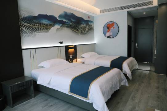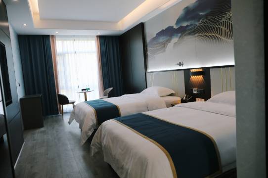 忘记拍照片了,房间很新,很干净,很整洁,然后人员接待也很有礼貌,非常好,也很方便,推荐推荐推荐,主要是很方便,出门就是高铁站,推荐推荐推荐。