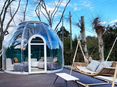 占地面积3000平方米左右,其中有5栋日本传统古民宅和4个帐篷。