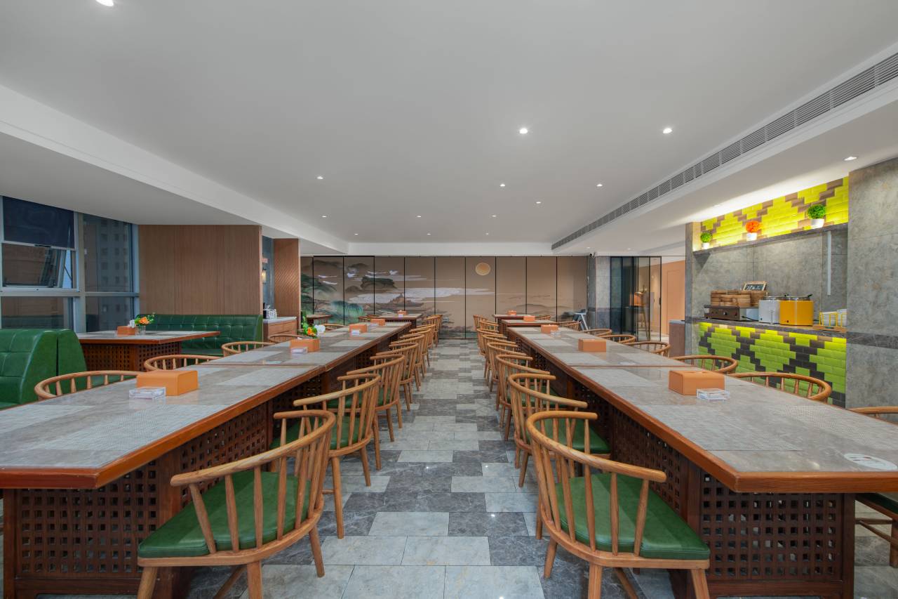 酒店早餐厅位于酒店6楼,采取中西式自助早餐,并设有福州特色捞化,多种食材供客选择,丰富的菜品,优雅清净的环境,为您的新一天注入满满的活力。
