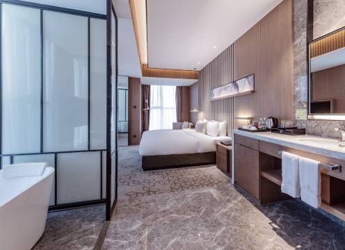 酒店所有客房均享24小时天然源脉温泉,部分客房都配有浴缸,让您尽享“温泉水滑洗凝脂”,一扫旅途的疲惫。