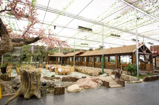 2500多平米的生态园餐厅,开放区域假山矗立,溪水潺潺,包间区域有各规格包间。露天游泳、KTV包房、台球厅、棋牌室等娱乐设施,是你来到草原放松心情的好去处。