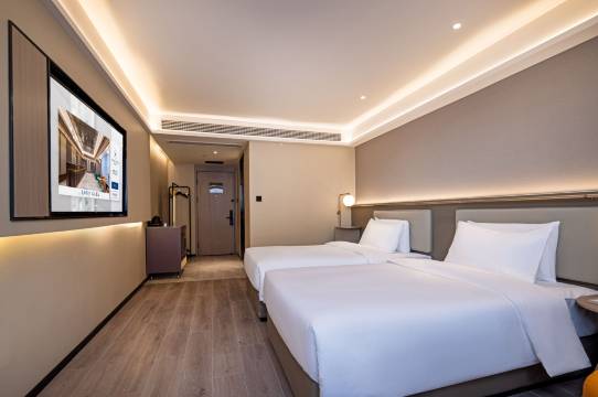 房间宽敞整洁,采光极佳,装修风格简约现代。床铺柔软舒适,一夜安眠无扰;洗漱间干净清爽,热水供应稳定,洗护用品品质高。设施齐全,智能电视、空调、高速WiFi一应俱全,满足了工作和休闲双重需求。早餐品种丰富多样,现做现吃,食材新鲜,口味出众,令人食欲大开。