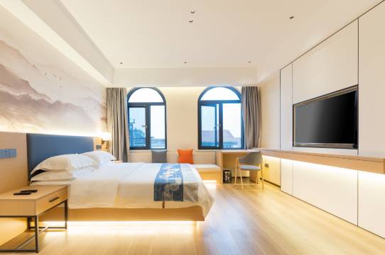 房间非常大,虽然临街 但是闹中取静还是蛮不错的,关键价格也合适,新开的酒店,装修风格挺好的,房间非常大。酒店马桶都是智能马桶。整体入住很好。