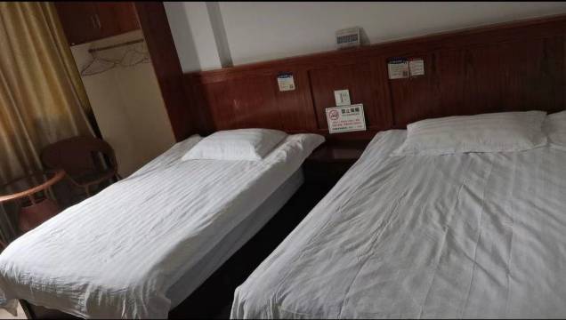 考试订的房,老板顶着剪了一半的头过来给我办入住到的比较晚没房间了给免费换了个豪华标间☺️。房间挺敞亮的没啥异味,睡得很香。大大的赞!☺️☺️☺️