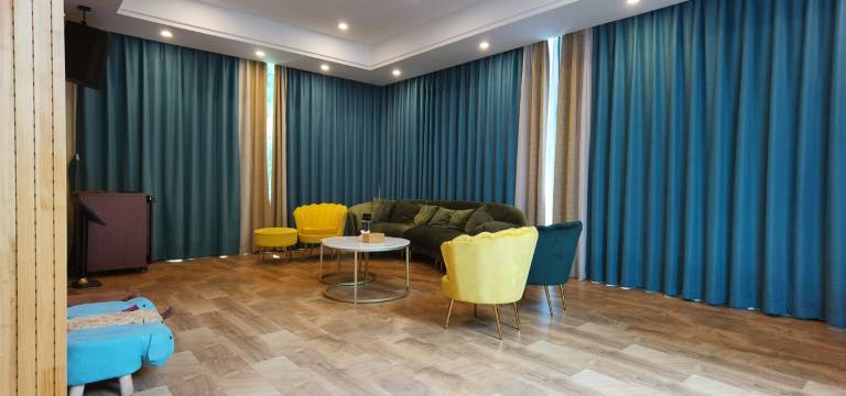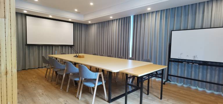 地处戴村云石旅游度假区,门前有小溪经过、群山环绕、空气清新。房间装修特色简约、轻时尚为主,配套早餐操作间及餐厅;配套独立儿童户外游乐区、室内影音区、书吧;庭院休闲区、棋牌室、卡啦OK房;另配置二十人左右会议室,可接待小型公司团建。