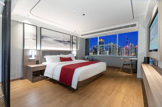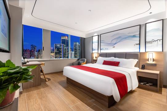 欣禧酒店芦林商贸城店由景柏丽酒店集团投资运营,酒店为舒适商务风格的独栋建筑,聘请知名设计师团队精心打造,空间宽敞,布置精美,是一家集住宿、餐饮于一体的连锁轻奢中国风精品酒店。位于朱河商贸城旁,毗邻朱河一桥,距离老街步行约5分钟,距离朱河高速口约15分钟;酒店周边设施完善、紧靠小吃街(或当地宵夜地方),城景宜人,吃喝玩乐俱全,是你旅游休闲娱乐的理想选择。酒店客房干净整洁,房内配备有100兆wifi、24小时热水、变频空调、网络智能电视、一次性拖鞋和洗漱用具,床上用品一客一换,温馨舒适,给您家一般的入住享受。经过一座城,寻觅一间房,消去您满身的疲劳,我们将以热情的服务,舒适的房间,期待您的到来。我们,在这里,等您来!
