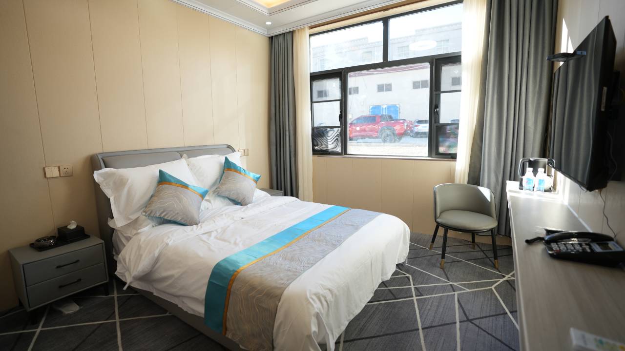 酒店就在粮食公司院内,房间卫生整洁,停车场很大停车方便
