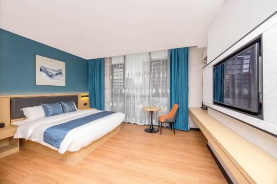 酒店整体环境非常不错,房间干净卫生舒适,窗外景色不错,设施比较新让人感觉很好,老板娘态度很热情耐心。