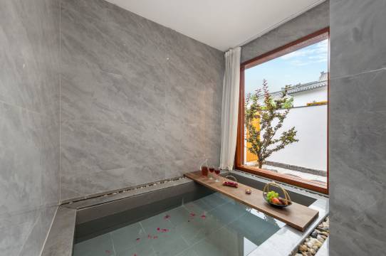 过年期间临时决定来忻州古城有幸订到一间,和老公没有太大的期待,因为我们平时很少选择民宿都是华住会旗下,没想到超出预期。过年期间人流量大古城管控需要店内人员接进古城,接我们的小姐姐很贴心也很有耐心,会有帮拿行李服务。民宿位置很优越出门就是小吃街和泰山庙离秀容书院也不远,逛累了可以随时回去歇脚。中厅和前厅提供的百岁山自取很是方便,民宿提供的免费用品也很齐全,房间内水果新鲜、零食种类丰富。小姐姐们都非常热情周到,出门会提供小包纸巾,会发送打铁花表演时间和早餐攻略。房间很干净,泡池很大还提供了玫瑰花瓣和浴盐,疲惫的一天泡一泡温泉可以缓解疲劳,小院闹中取静。这家民宿从服务、卫生、环境、设施、布草都很满意,推荐给大家,也会推荐给身边朋友。下次来一定还会选择这家。