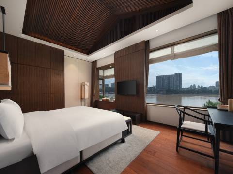 乐山禅驿·嘉定院子酒店面朝三江的恢弘大气,远眺三江、近靠大佛,煮一杯清茶焚一盏香,在寥寥青烟里,与对岸的喧哗作了对比,身心清净。试问,哪家酒店里有宏伟的城门楼?但禅驿有,连接着嘉定坊的那座城楼,每一间客房都是细致的创新,有别于其他酒店的房卡,酒店是佛珠开门的全新体验,金丝楠手串的房卡,很多人都没有过这样细致的体验,是入住的理想选择。