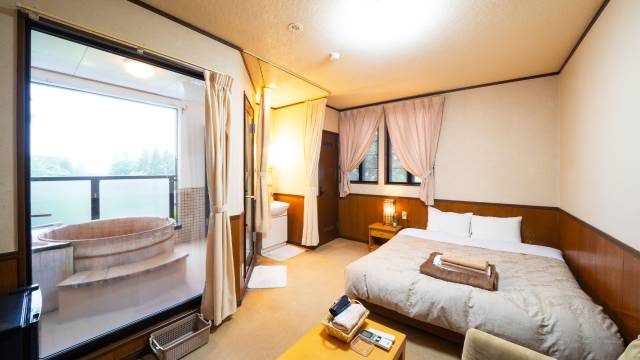 房间宽敞舒适,后院的温泉也很棒。房间里确实有点味道,但我猜可能是最近刚做过虫害防治(闻起来像杀虫剂)。只要把窗户打开一会儿,它就会消失。