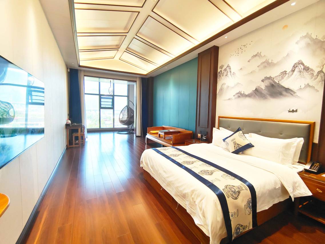 房间的家具居然都用金丝楠木做的,高端大气上档次。因为是旅游淡季过来,人不多,感受非常好,第一天到了就泡温泉,住了一晚第二天睡醒再游个泳,感觉我们都是包场的,非常好的一次入住体验,值得再来。