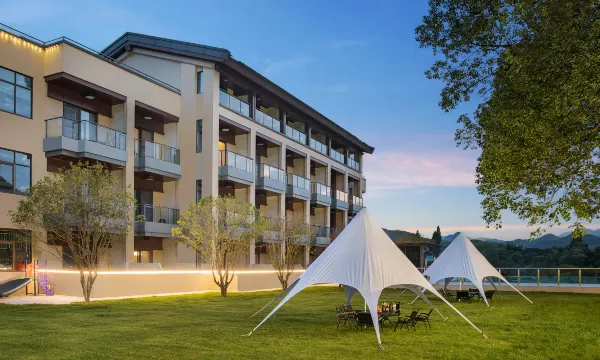 这是由浙江久祺运动发展有限公司投资打造,荣膺国际饭店业十佳文化主题设计酒店。这里整体吴越风格,旨在营造舒适、静心私密空间的同时,外挑式露台设计让您与自然融为一体,为您褪去旅途的疲乏,舒展身心,守护您一整晚的慵懒好眠。
