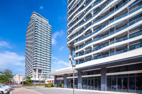 酒店位置很好离高铁站不远,下面就有万达,服务也不错,里面干净卫生视野也很好能看到海,下次还会选择。