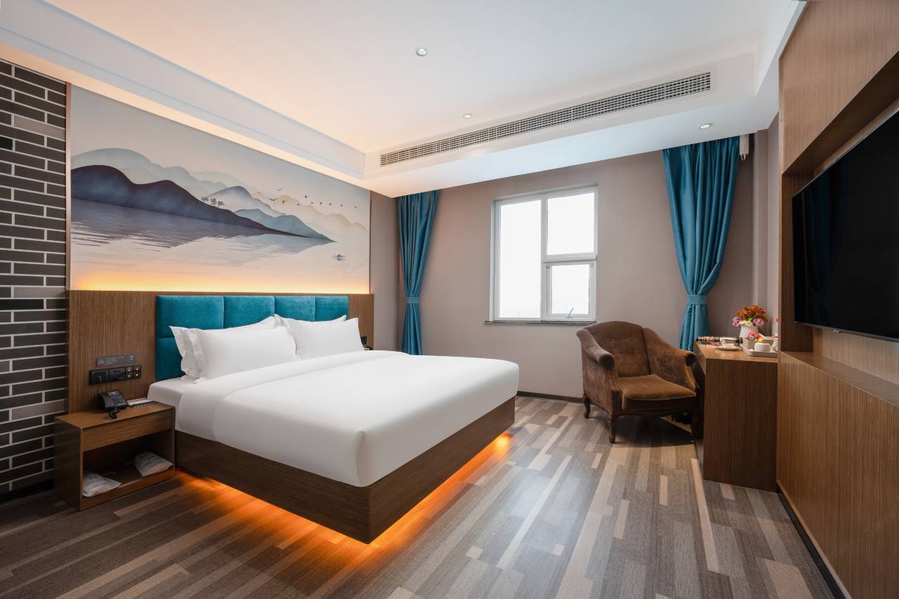 来这边出差随便订的酒店,没想到体验感拉满!前台小姐姐特别热情,看我拖着大行李箱还主动帮忙送到电梯口,有啥问题随叫随到,服务真的没话说。房间卫生超干净,床单被罩没有一点褶皱和异味,连浴室玻璃都擦得透亮。房间里该有的都有,空调制冷快,热水壶和吹风机也看着很新。楼下也有烧烤街,买东西超方便,周边环境也不吵,隔音效果不错,晚上睡得特别踏实,性价比真的高!